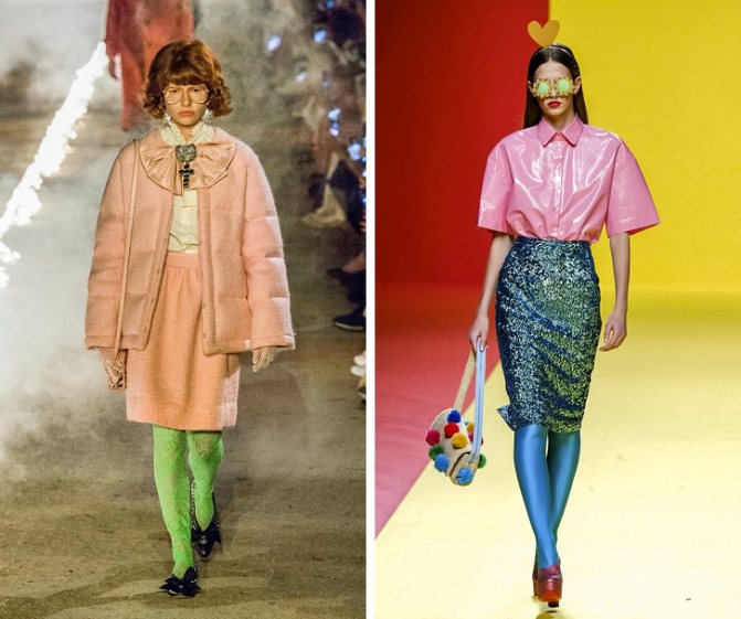 - имитация вязки на плотных колготках, геометрические принты сочетаются с теплой зимней одеждой;