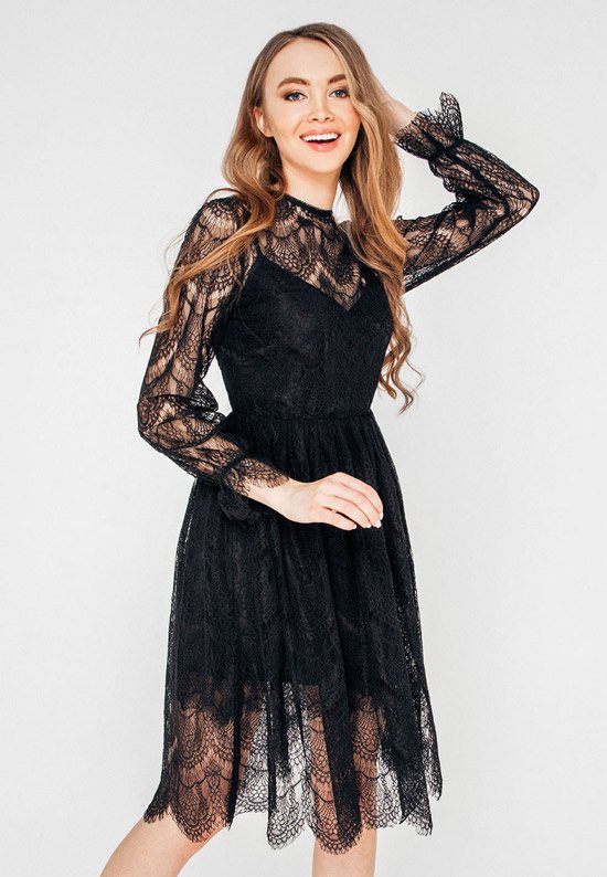 Кружевные и атласные черные платья