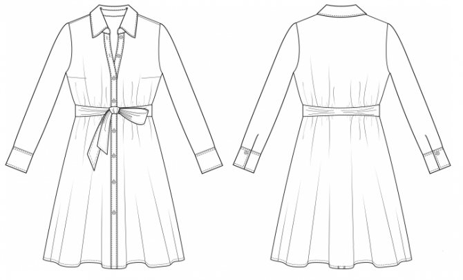 Технический рисунок платья Выкройка платья с одношовным рукавом