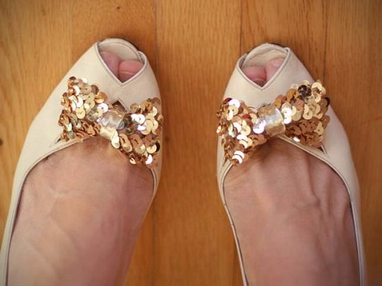 В теплую погоду мы все любим гулять в удобных лодочках. А чтобы практичная обувь дольше сохраняла красивый внешний вид, ее тоже можно декорировать пайетками, наклеив их поверх кожи любым удобным образом: