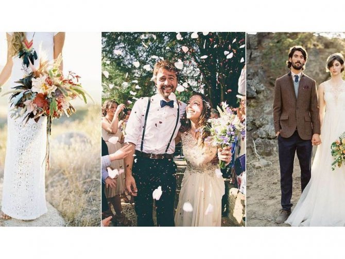 В данном стилевом направление легко улавливаются черты нескольких разных культур: шотландские, монгольские, цыганские, африканские и готические. Прелесть стиля бохо в его непринужденности и необычном выборе места проведения свадьбы: берег моря, старинный замок, беседка в саду.