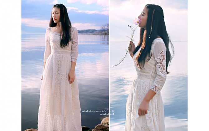 В общем, выбирая одеяние, обязательно учитывайте, что должно создаваться ощущение загадочности, лёгкости, таинственности – для этого и используются натуральные ткани: лён, шёлк, кружева, тончайший шифон и др. Главное, в нежной и постельной палитре. Близости с природой добавят цветочные композиции на подоле, а также в причёске.