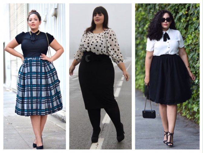 Умело подобранная блузка с бантом или рюшами поможет в создании нового романтичного образа. Изящно оформленный бант на вороте блузочки привлечет внимание к шее полной девушки, отвлекая при этом от талии или бедер.