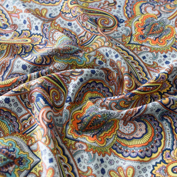 Представляет собой натуральный или синтетический шелк с нанесенными узорами или рисунками. В отличии от стандартного одноцветного материала, набивной шелк обладает не только качественными, но и декоративными характеристиками, и является одной из популярнейших тканей среди дизайнеров моды. Внешне такой шелк похож на штапель