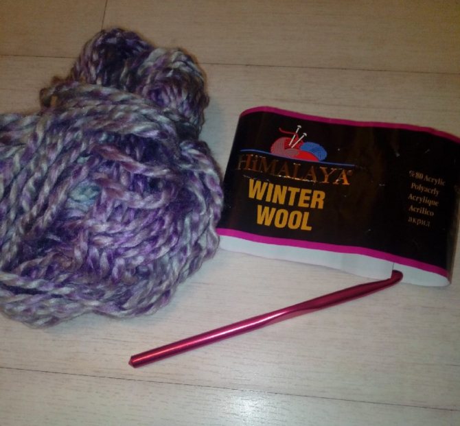 Пряжу выбираю с учетом холодных зим. Вяжу ее именно на этот период. Нить толстая. Называется HiMALAYA Winter wool. В ней 80 % акрила и 20 % шерсти. На 100 г приходится 70 метров нитки.