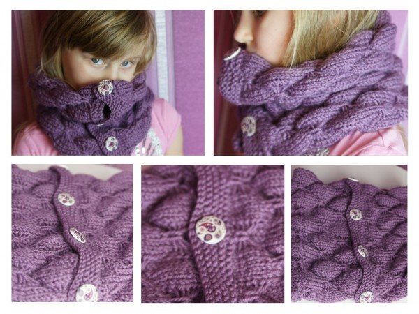 Этот шарф хомут удобен и универсален, подойдет он как для мамы, так и для девочки, а в черном цвете хорошо подойдет для мальчика. За счет пуговиц, одевать его очень удобно, и прослужит он не один год. Простой и удобный в работе, этот эффектный шарф по рукам даже для начинающих мастериц, так что можете без опаски брать в руки инструмент и моточки пряжи.