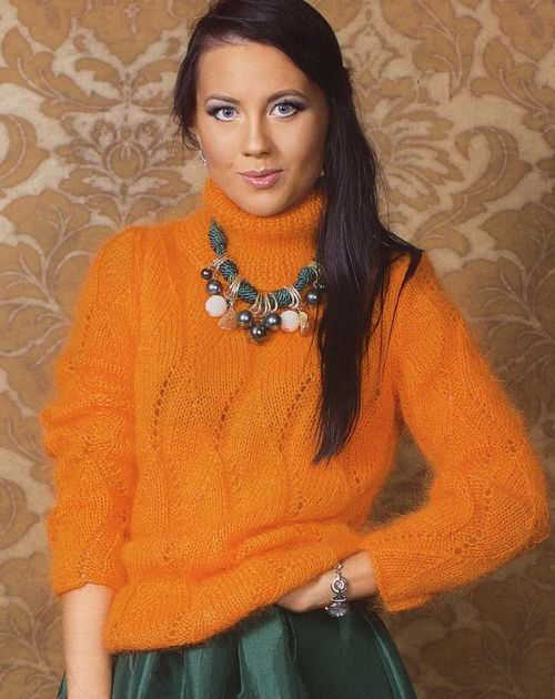 Женский свитер из мохера с воротником хомут со схемами и описанием