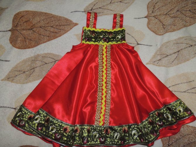 В заключении нужно отметить, что пошив русского традиционного сарафана не такой сложный как кажется на самом деле. Он выполняется всего из нескольких больших кусков ткани. Нужно обладать только минимальными навыками шитья, возможно даже сшить его без использования машинки. Такое изделие можно делать как для маленьких девочек, так и для женщин. Подойдет на утренник в сад или выступление на празднике. С работой справится даже начинающая швея, важно только правильно снять размеры.