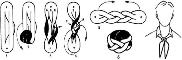 - Затем правая сторона аксессуара проводится сзади левого конца и продевается в образовавшееся ушко;