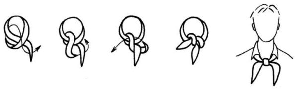 На представленной картинке можно наглядно увидеть, как быстро и просто пионеры завязывали свой галстук. Следует отметить, что данный способ наиболее прост в завязывании и в большинстве случаев ни у кого не возникало трудностей с его реализацией.