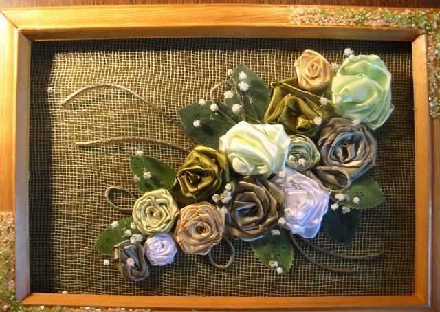 Рисуем лентами дальше. Следующий мастер-класс предлагает вашему вниманию процесс создания красивого панно из любимых роз для начинающих. Такая изящная и не сложная работа подойдет для украшения любого интерьера. Также подобное панно можно преподнести в качестве оригинального подарка близким и родственникам.
