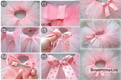 Готовую юбку пачку можно украсить бантом.