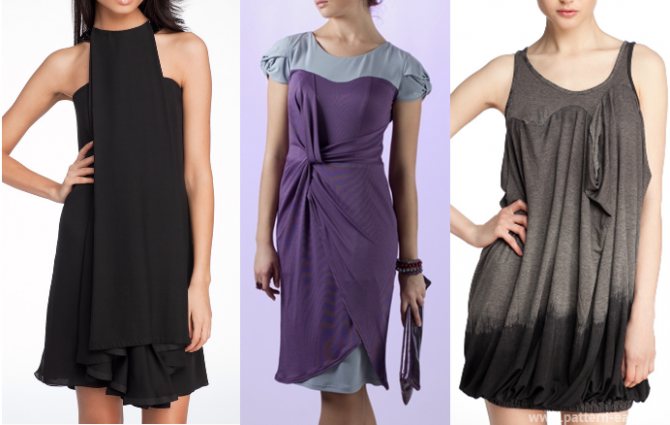 Начинать работать с кокеткой лучше с простых фасонов платья – сначала выполните платье с классической кокеткой под линию груди или выше линии груди (первые два вида кокетки из нашей статьи). Потом можно сделать летнее платье с классической круглой кокеткой. И уже потом, когда вы набьете руку, наберетесь опыта и творческой смелости, тогда можно будет задумать и воплотить нечно более смелое и интересно-необычное, как например вот эти платья сочетающие в себе 2 элемента кроя – кокету + драпировку.