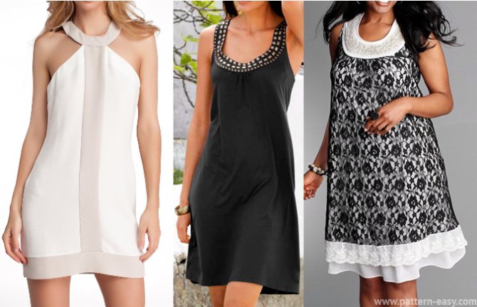 Все что вам останется – это сшить плечеввые стороны заднего и переднего хомутика – и сшить боковые стороны подолов спинки и переда. Потом обработать линии пройм и низ подола. И все наше платье готово. Точно такое же как на картинке.