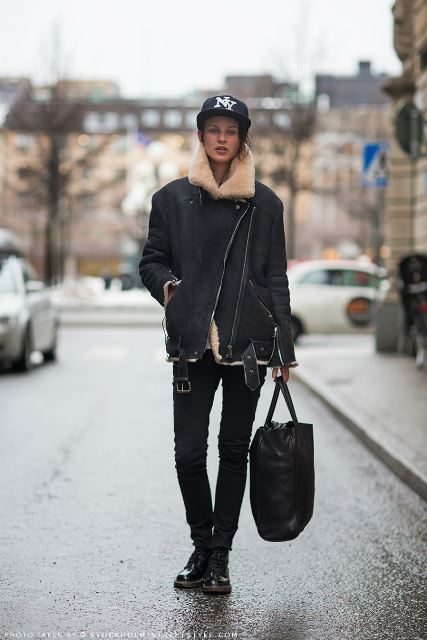 Уделите внимание не только гардеробу, но и своей прическе. Распущенные волосы в тандеме с утепленной кепкой и макияжем с акцентом на глаза сделают вас роковой красоткой, и подчеркнут дерзкий стиль.