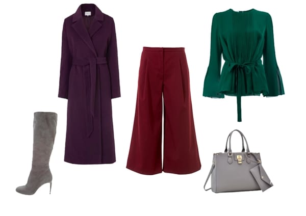 Обратите внимание! Если для вашей фигуры нежелательна такая горизонталь (это актуально для полных женщин или дам невысокого рос) то, имеет смысл подобрать колготки в тон ботильон и брюк.